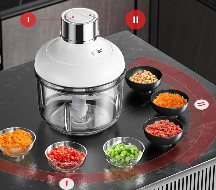 Siekacz Bear to niezbędne narzędzie w każdej kuchni. Dzięki dwóm pojemnikom i dwóm prędkościom możesz łatwo przygotować różne potrawy, od jedzenia dla niemowląt po siekane mięso. Jest to wszechstronne urządzenie.
