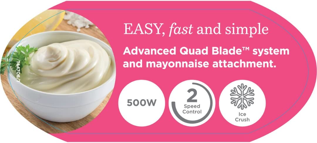 - Dzięki dużej pojemności 500 ml doskonale przygotujesz się do codziennego przygotowywania posiłków, siekając składniki szybko i bez wysiłku.