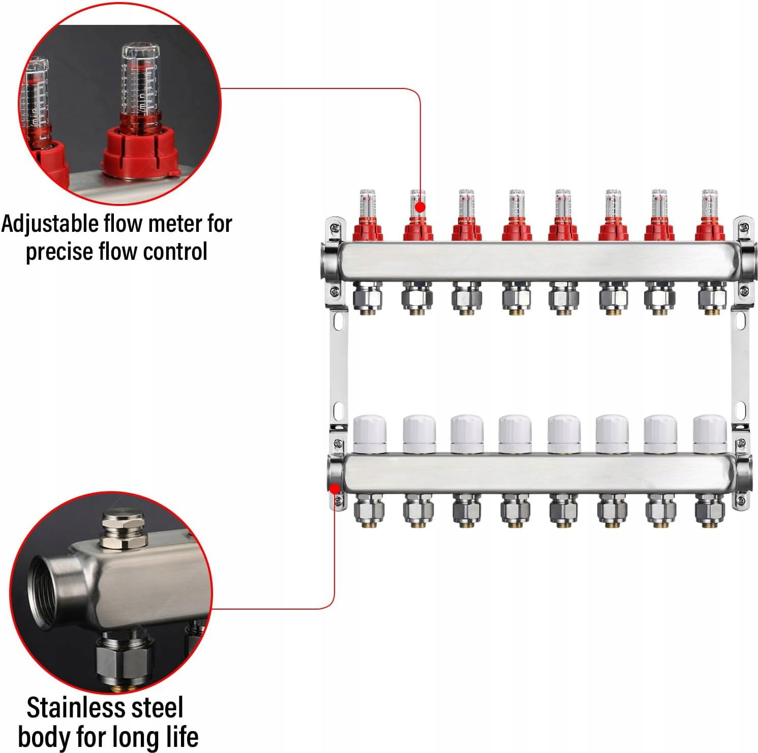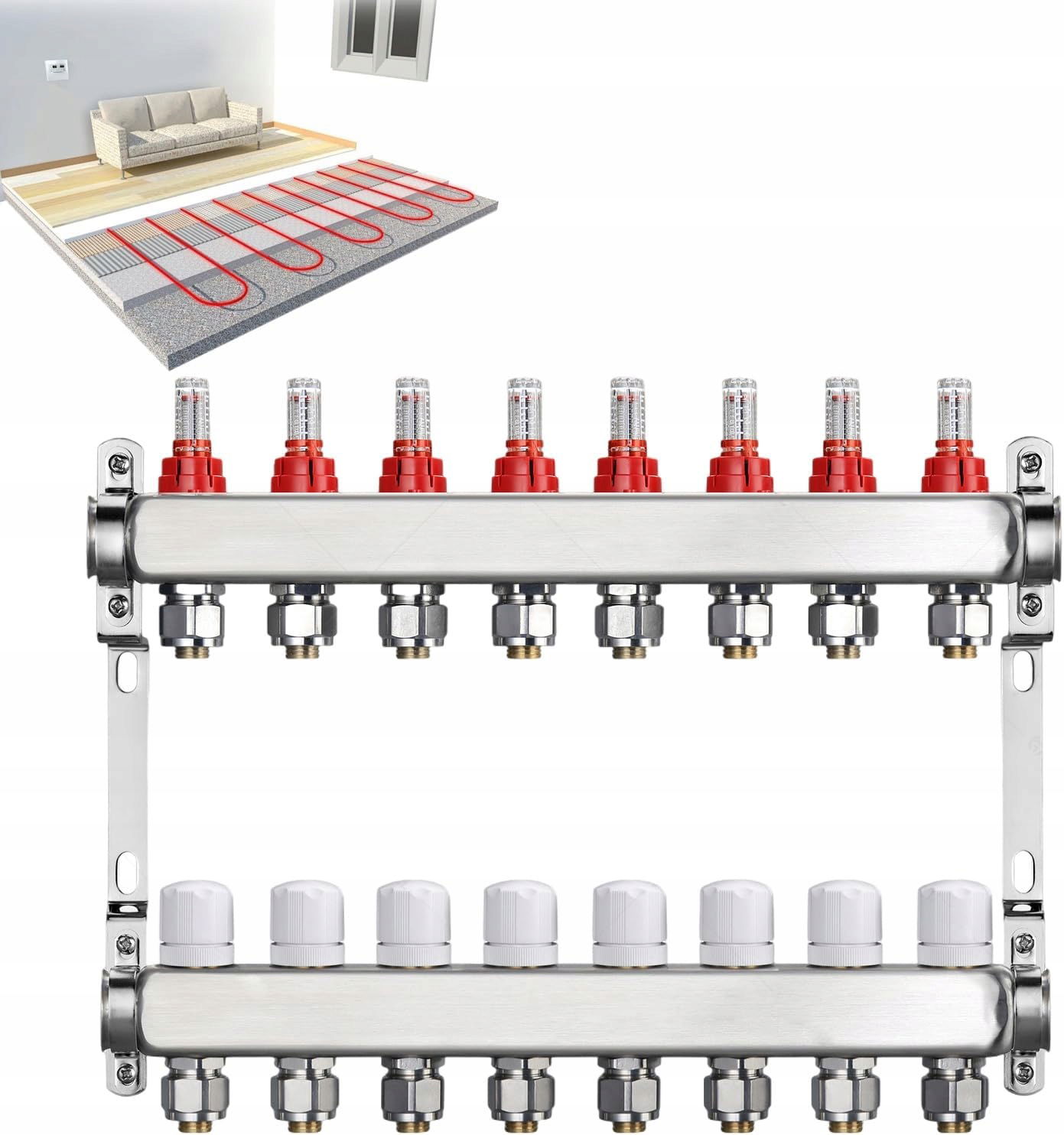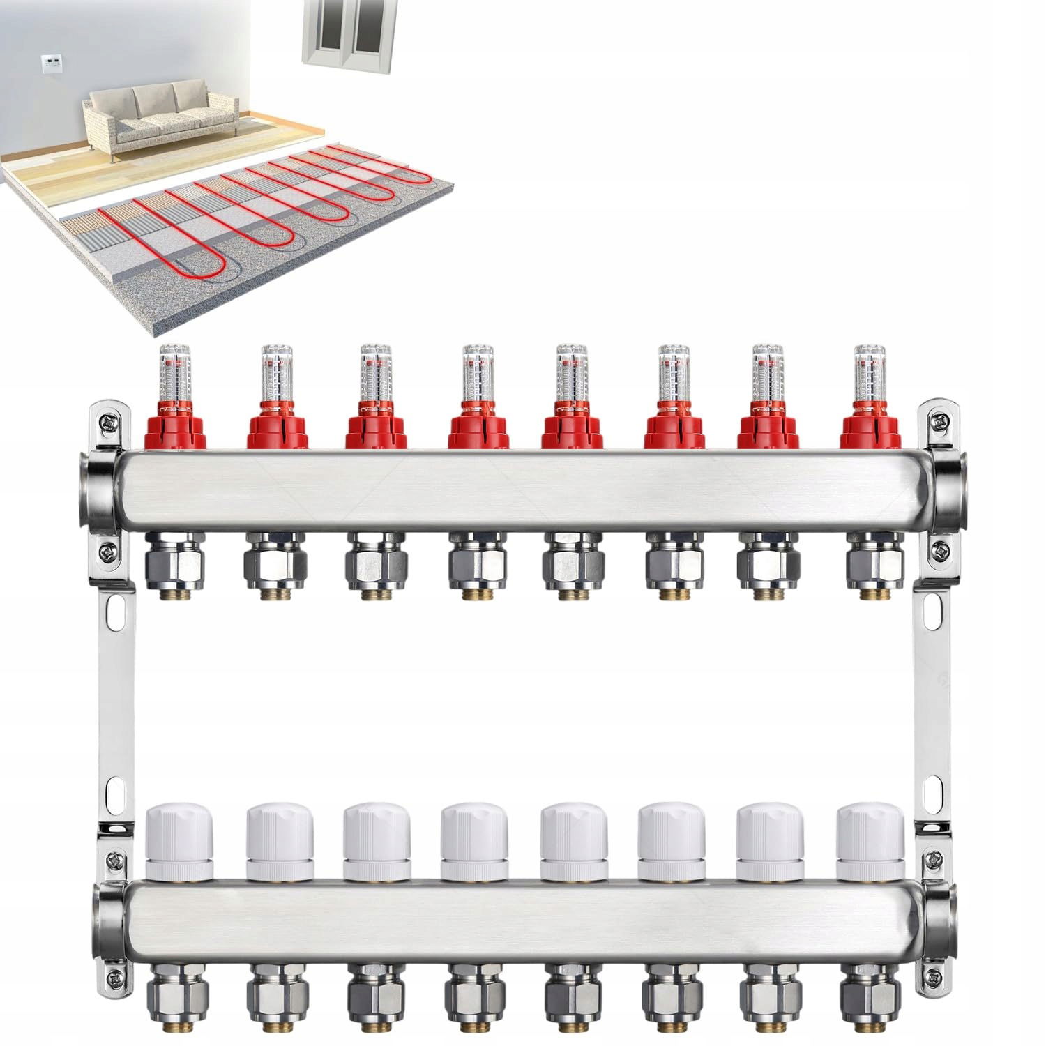 ✅ W zestawie: Rozdzielacz obwodu grzewczego ze stali nierdzewnej do ogrzewania podłogowego
