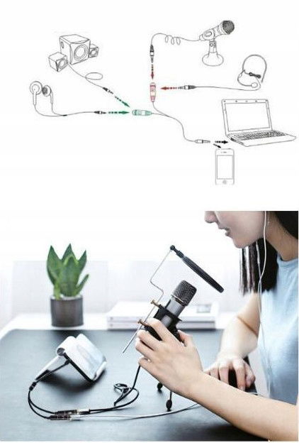 Kabel pozwalający na rozdzielenie sygnału z laptopa, komputera, konsoli oraz innych urządzeń posiadających zintegrowane gniazdo audio (mikrofon i słuchawki w jednym porcie) na dwa osobne gniazda.