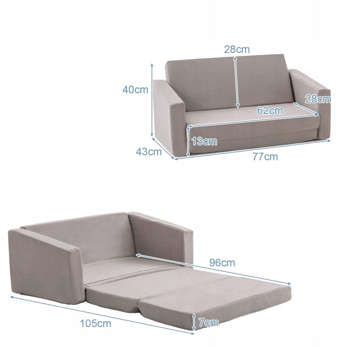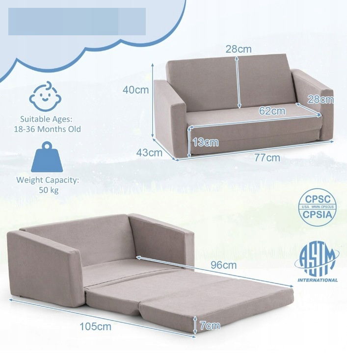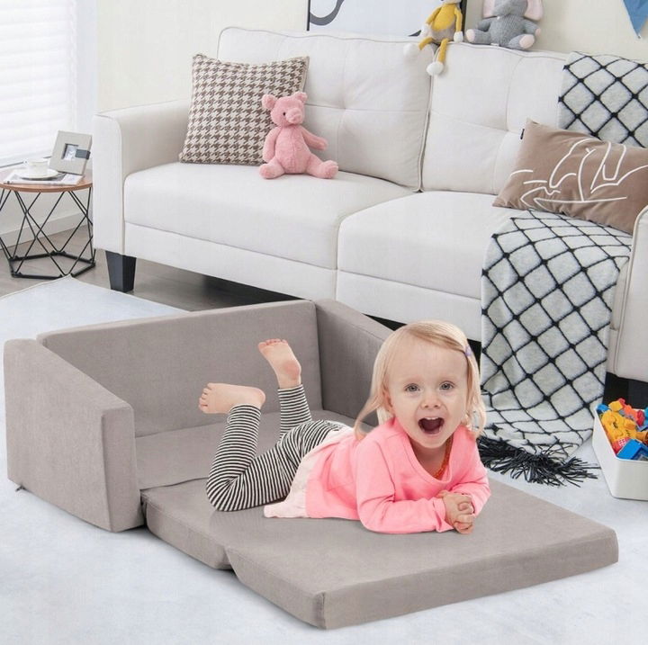 Rozkładana mini sofa dziecięca 2w1, tapicerowany fotel 50 kg Costway