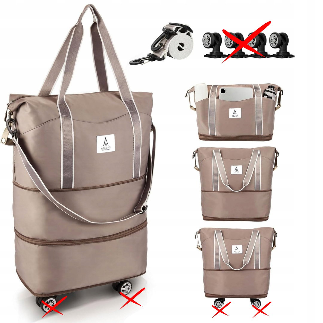 Arxus Rozszerzalna Torba Podróżna z Odpinanymi Kółkami, Damska Mężczyźni Duża Składana Weekendowa na Bagaż Podręczny na Walizkę z Paskiem na Ramię dla Samolotu Podróżnego 25L-55L