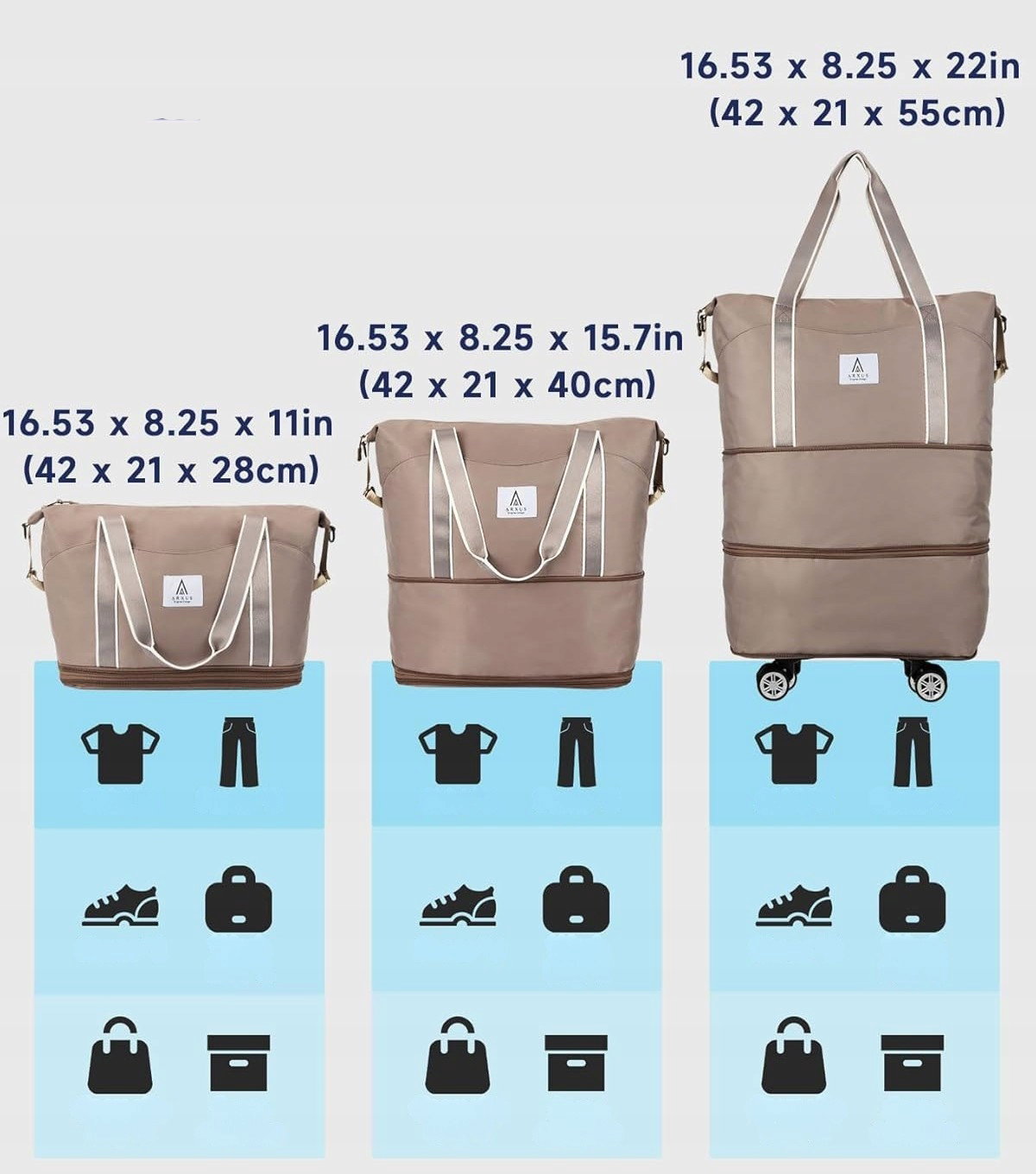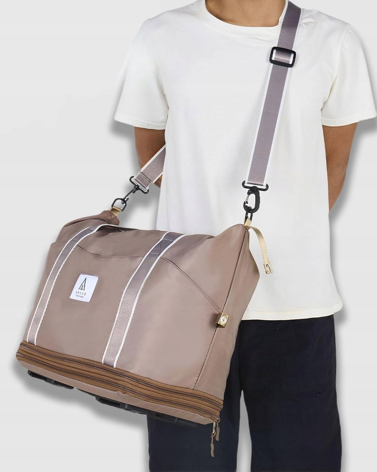 Rozszerzalna Torba Podróżna Bagaż Do Samolotu ARXUS 25-55L JASNY BRĄZ
