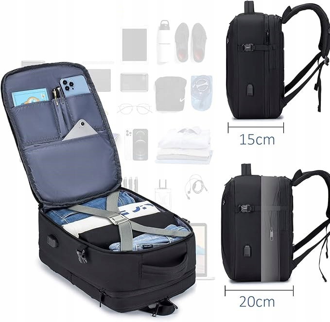Plecak podróżny SUCIKORIO to doskonały wybór dla osób szukających funkcjonalnego, wygodnego i pojemnego plecaka na podróże samolotowe. Z maksymalnymi wymiarami 40 x 20 x 25 cm, jest idealnym rozwiązaniem jako bagaż podręczny dla linii lotniczych takich jak Ryanair, Easyjet, TUI, Spirit i inne. Dzięki rozbudowanej konstrukcji z rozszerzalną funkcjonalnością i specjalnymi kieszeniami, ten plecak sprawdzi się zarówno w podróży służbowej, jak i turystycznej.