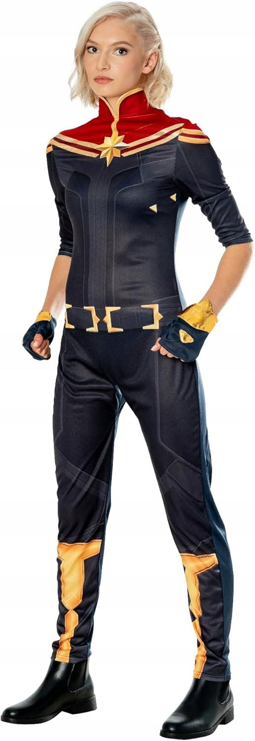 Rubies Kostium Kapitana Marvel dla kobiet Kombinezon i 2 rękawiczki, Oficer Marvel na karnawał, Boże Narodzenie, Urodziny, Imprezy i Halloween.