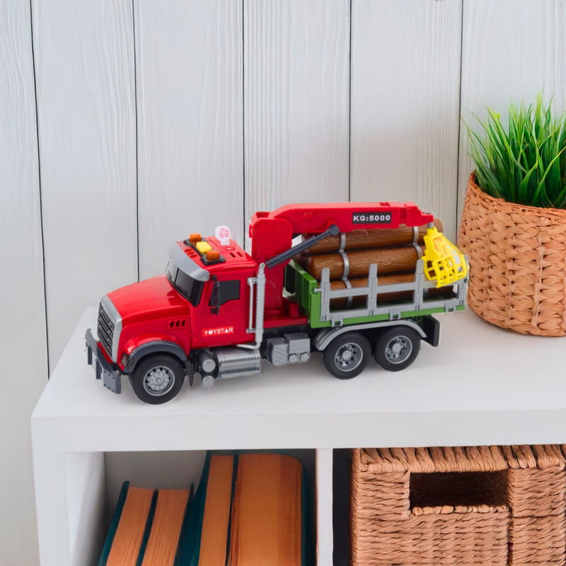 Zabawka rozwija wyobraźnię, zdolności manualne, umiejętność odgrywania ról, zrozumienie zasad działania pojazdów oraz koordynację ręka-oko. W zestawie znajduje się ciężarówka z przyczepą, ruchomy dźwig obrotowy z chwytakiem oraz bale drewna do przenoszenia. Produkt wykonany jest z trwałego tworzywa o bezpiecznych, zaokrąglonych krawędziach.