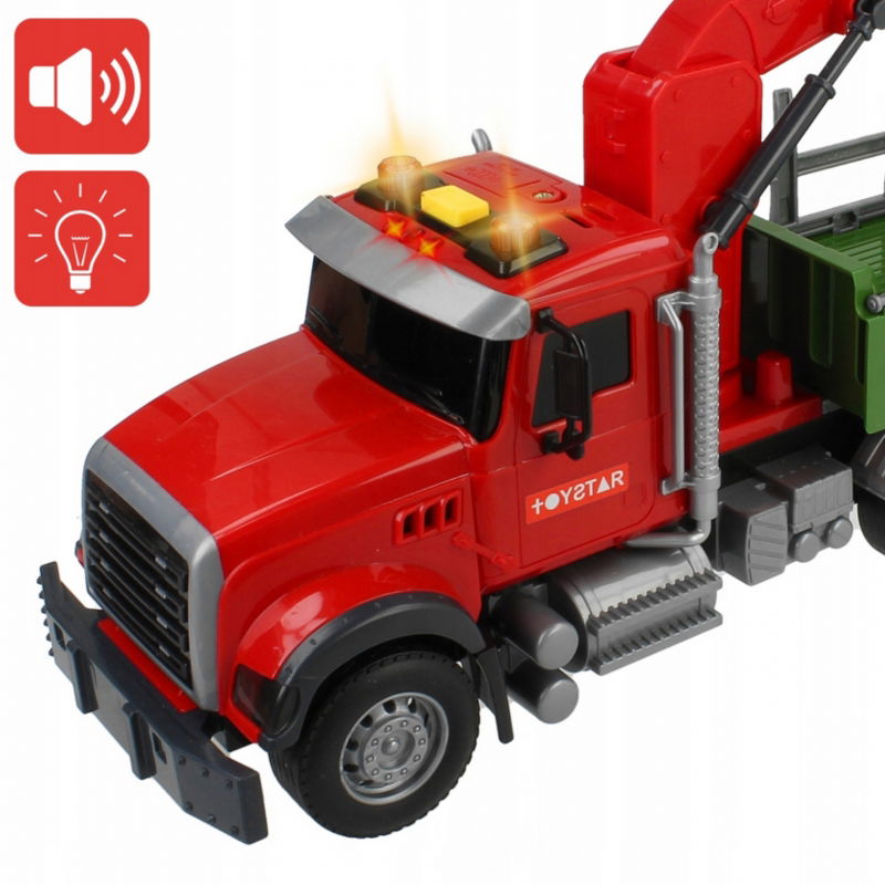 Ta interaktywna ciężarówka z dźwigiem do drewna od renomowanej marki Woopie przenosi dzieci w fascynujący świat transportu i pracy ciężkiego sprzętu. Jest to mobilne centrum operacyjne oferujące możliwość zabawy w załadunek i rozładunek drewna, symulację transportu oraz obsługę dźwigu. Zabawkowy pojazd, wzorowany na prawdziwych ciężarówkach wykorzystywanych w przemyśle drzewnym, posiada ruchomy dźwig obrotowy z mechanicznym chwytakiem do przenoszenia bali drewna. Dzięki realistycznym dźwiękom silnika, klaksonu i pracy maszyny, aktywowanym przyciskami na kabinie, oraz efektom świetlnym, wrażenia z zabawy są jeszcze bardziej imponujące. Ciężarówka porusza się samodzielnie po popchnięciu dzięki napędowi frykcyjnemu. To idealna zabawka dla dzieci, które interesują się pojazdami, budową, lasem, transportem i maszynami roboczymi.