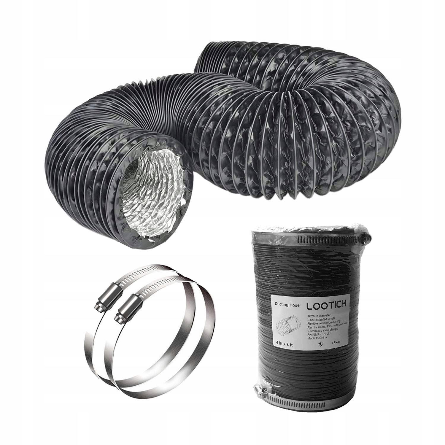 Rura Aluminiowa LOOTICH 102 mm x 2,5 m elastyczny przewód