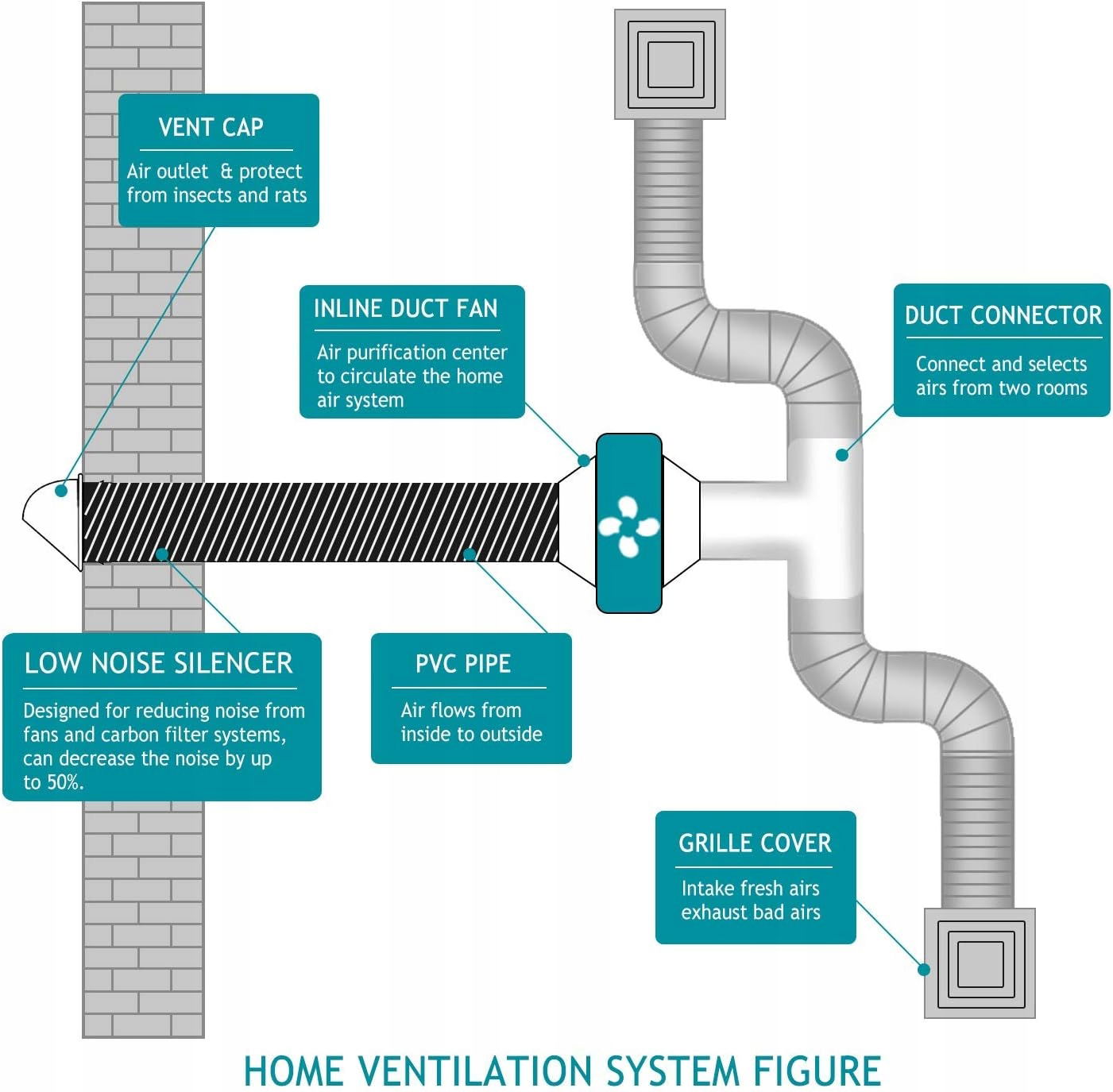 Łatwy w instalacji dzięki możliwości cięcia i zginania, doskonale sprawdzi się w trudno dostępnych miejscach, takich jak poddasza czy pomieszczenia do uprawy. W komplecie znajdują się zaciski ze stali nierdzewnej, co gwarantuje szczelne połączenie.