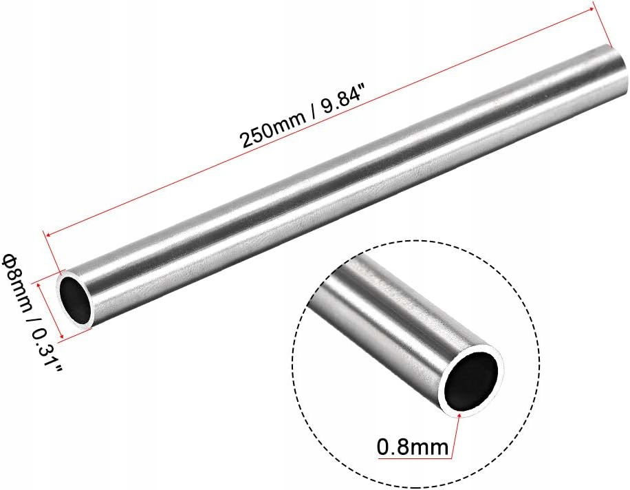 Rura okrągła Rura prosta Średnica zewnętrzna 8 mm 0,8 mm Grubość ścianki 250 mm Długość Stal nierdzewna 304 bezszwowa