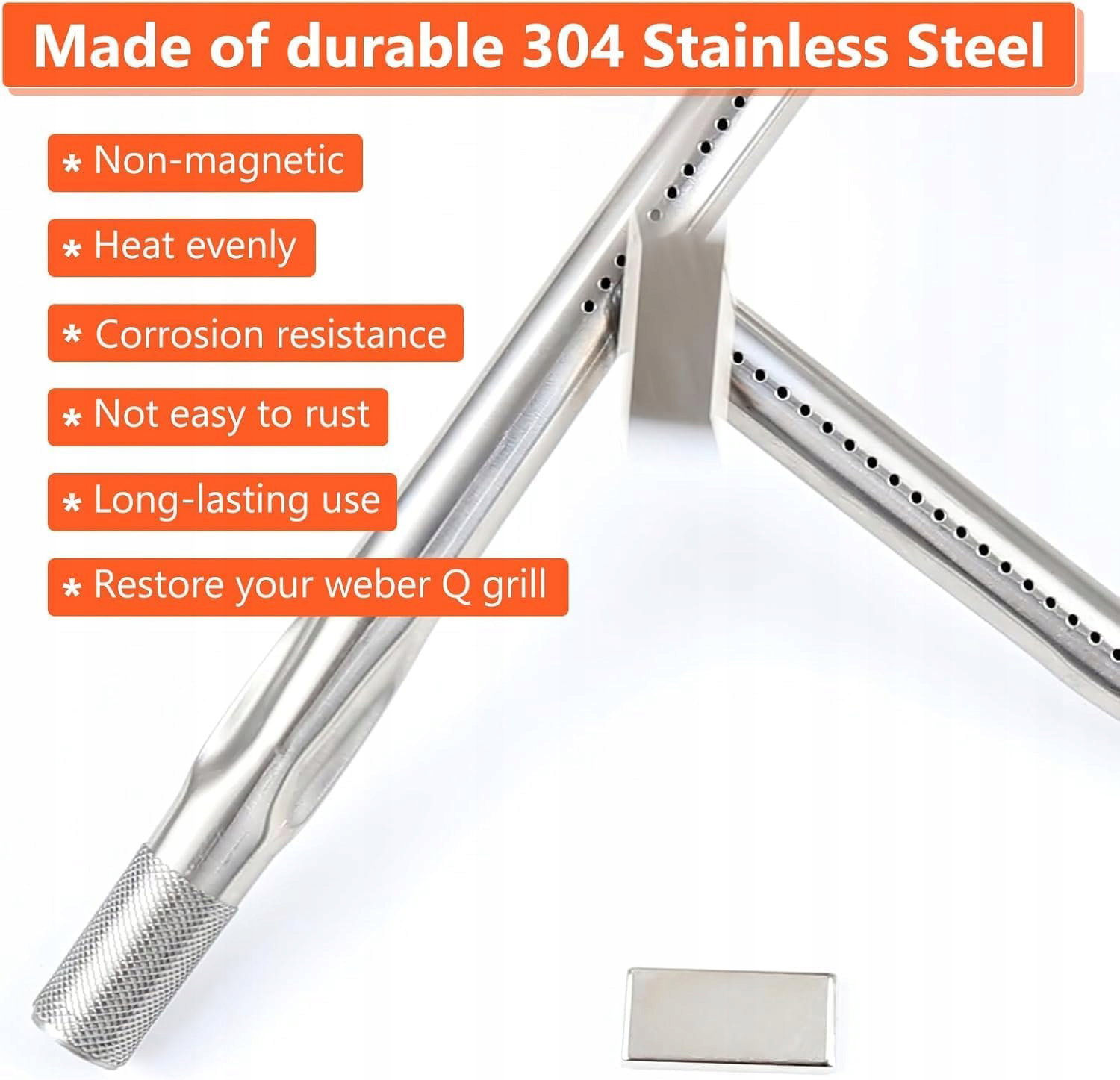 Denmay 65032 Rura palnika do grilla gazowego Weber Q300, Q320, Q3000, Q3200, zestaw rur do grilla ze stali nierdzewnej zamiennik do serii Weber Q 60036, 80385, 13122, 404341, 57060001, 586002
