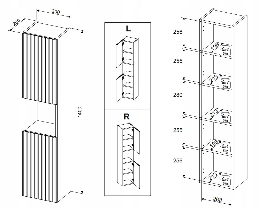 (możliwość wyboru strony drzwi podczas montażu - prawo lub lewo)