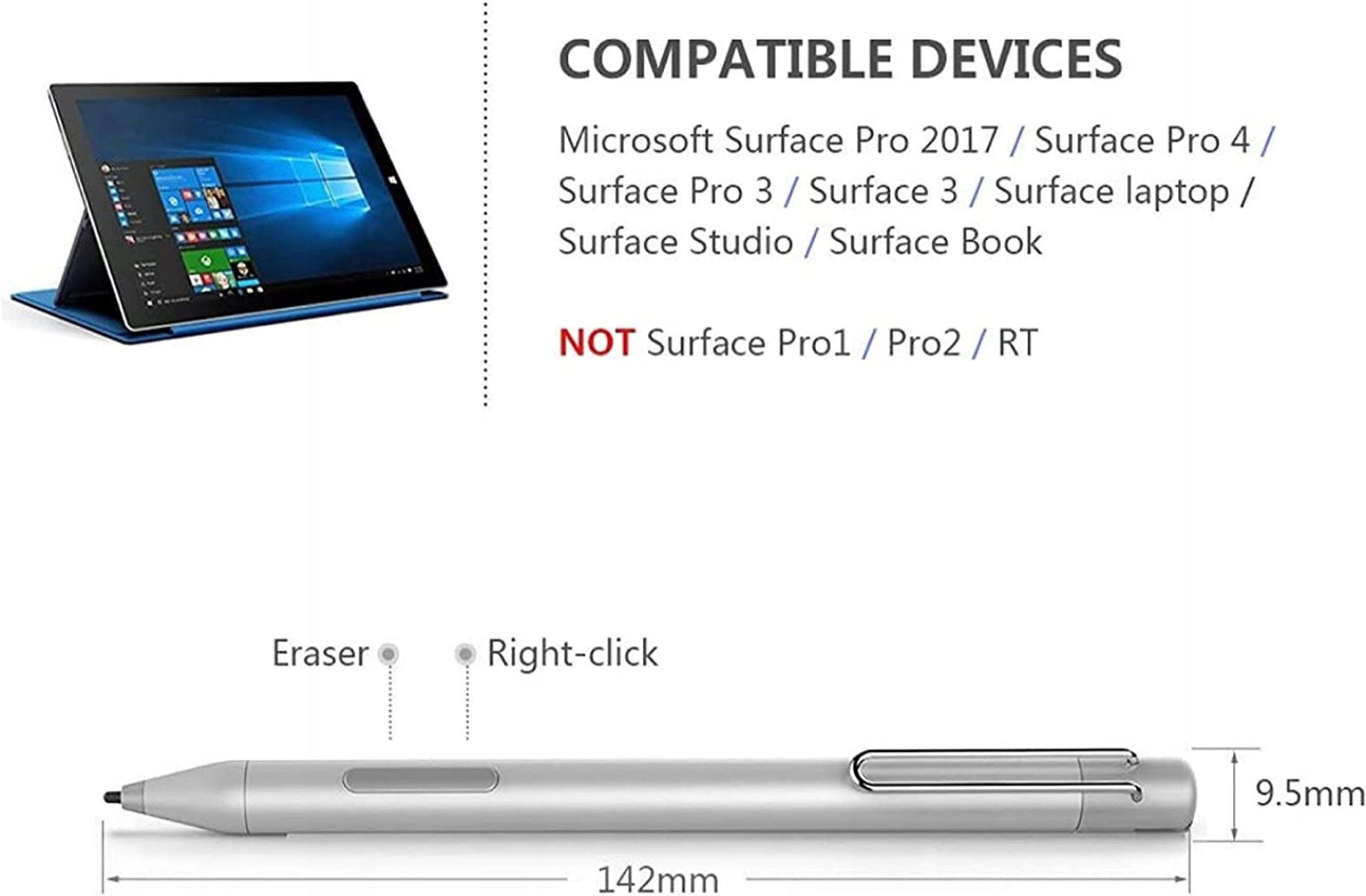 Aktywny rysik zgodny z Surface Pro 7 Surface Pro 6 Surface Laptop 3 2 1 Surface Book 3 2 1 Surface Go 2 1 Surface Pro 5 Pro 4 Pro 3 (srebrny).
