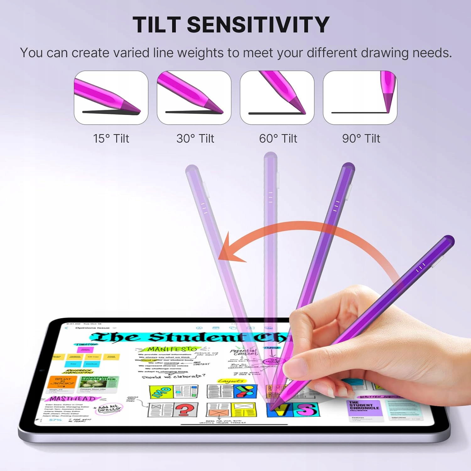 - ➡️【Czułość nachylenia i odrzucanie dłoni】: Funkcja wykrywania nachylenia pozwala rysować linie o różnej grubości na ekranie w zależności od kąta nachylenia rysika iPada, dzięki czemu pisanie i rysowanie jest bardziej swobodne. Ten rysik ma funkcję odrzucania dłoni, dzięki czemu możesz trzymać dłoń na ekranie bez obaw o przypadkowe dotknięcie. Idealny do rysowania lub pisania na iPadzie.
