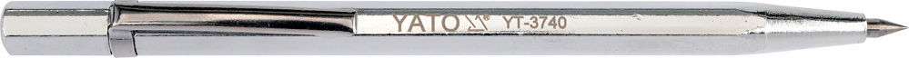 Rysik do szkła, ceramiki, i metalu marki YATO. Wykonany z metalowego pręta o długości 140 mm. Część robocza powstała z wysokiej jakości węglika wolframu YG6X. Rysik traserski do wyznaczania kształtów na powierzchniach szklanych, ceramicznych i metalowych.
