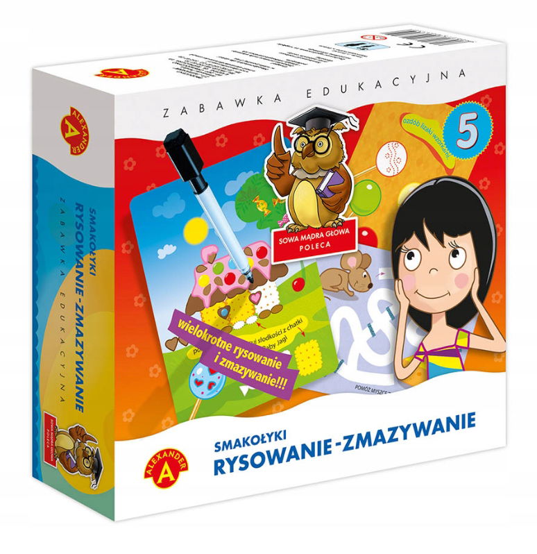 Zabawka zawiera 28 plansz z zadaniami o tematyce związanej z uwielbianymi przez dzieci smakołykami.