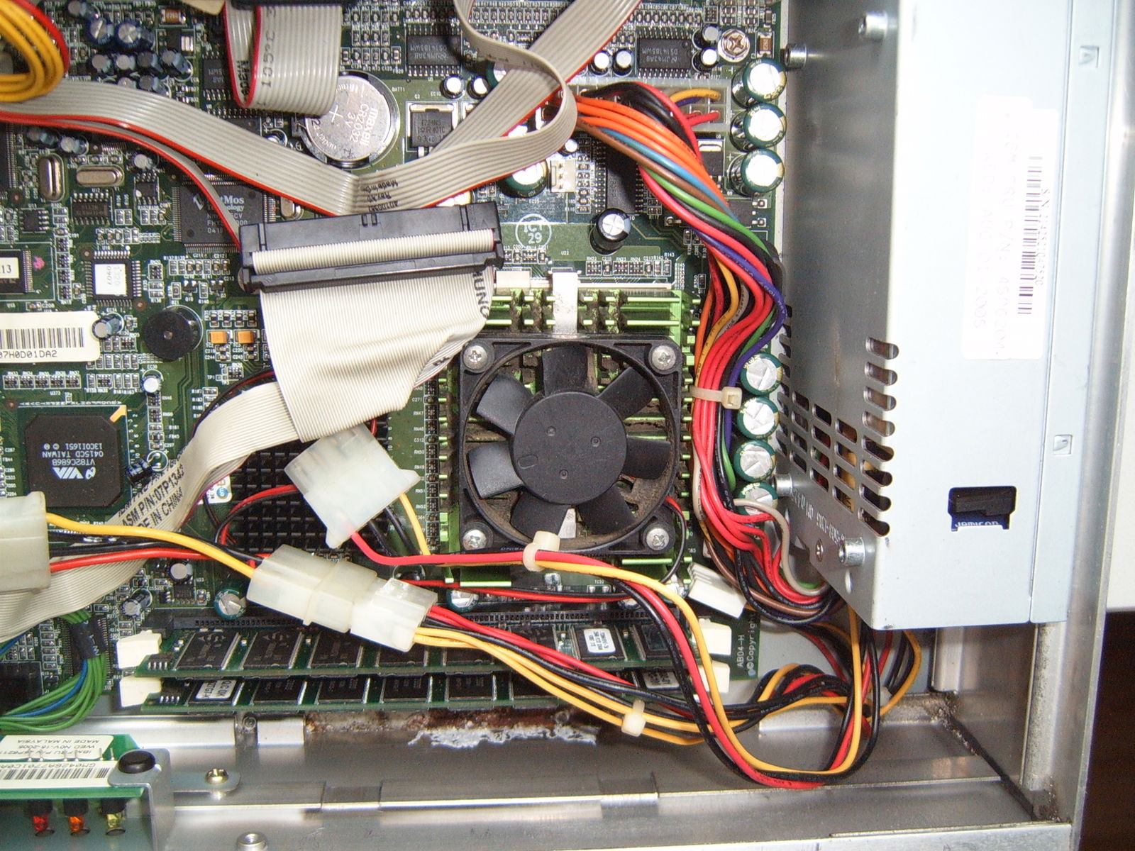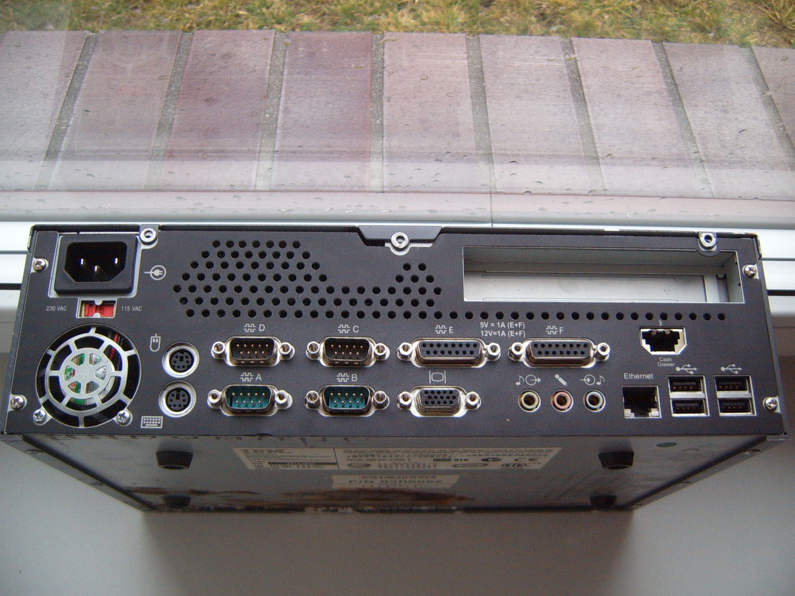 Komputer 4810-32H 03R5962 sluzyl zapewne jako terminal kasowy, czyli POS. Na pokladzie grafika, IDE, 4x USB, muzyka, Ethernet i conajmniej 7x serial, w tym 4x RS232 napewno, reszta to jakies dziwne porty podlaczone przez PCI. Wszytsko oprocz tych dziwnych portow szeregowych sprawdzilem, dziala. BIOS bez opcji klawiatury USB, SDRAMu widzi max 512mb. i tyle jest w zestawie. Procka oryginalnego nie bylo, obecnie w komplecie jest Celeron 600 (najslabszy jaki mialem, a to ze wzgledu na malo miejsca na radiator) na zyczenie moge wstawic cos wiekszego, w miare mozliwosci plyty. Na zdjeciach nie widac oryginalnej ramki na HDD, ale ona oczywiscie tez jest. Obudowa w stanie niezlym, poza wwidocznymi sladami zawligocenia i rdzy (dziury nie sa na wylot). Komp testowany byl dosc intesnywnie, zadnych problemow nie stwierdzilem.