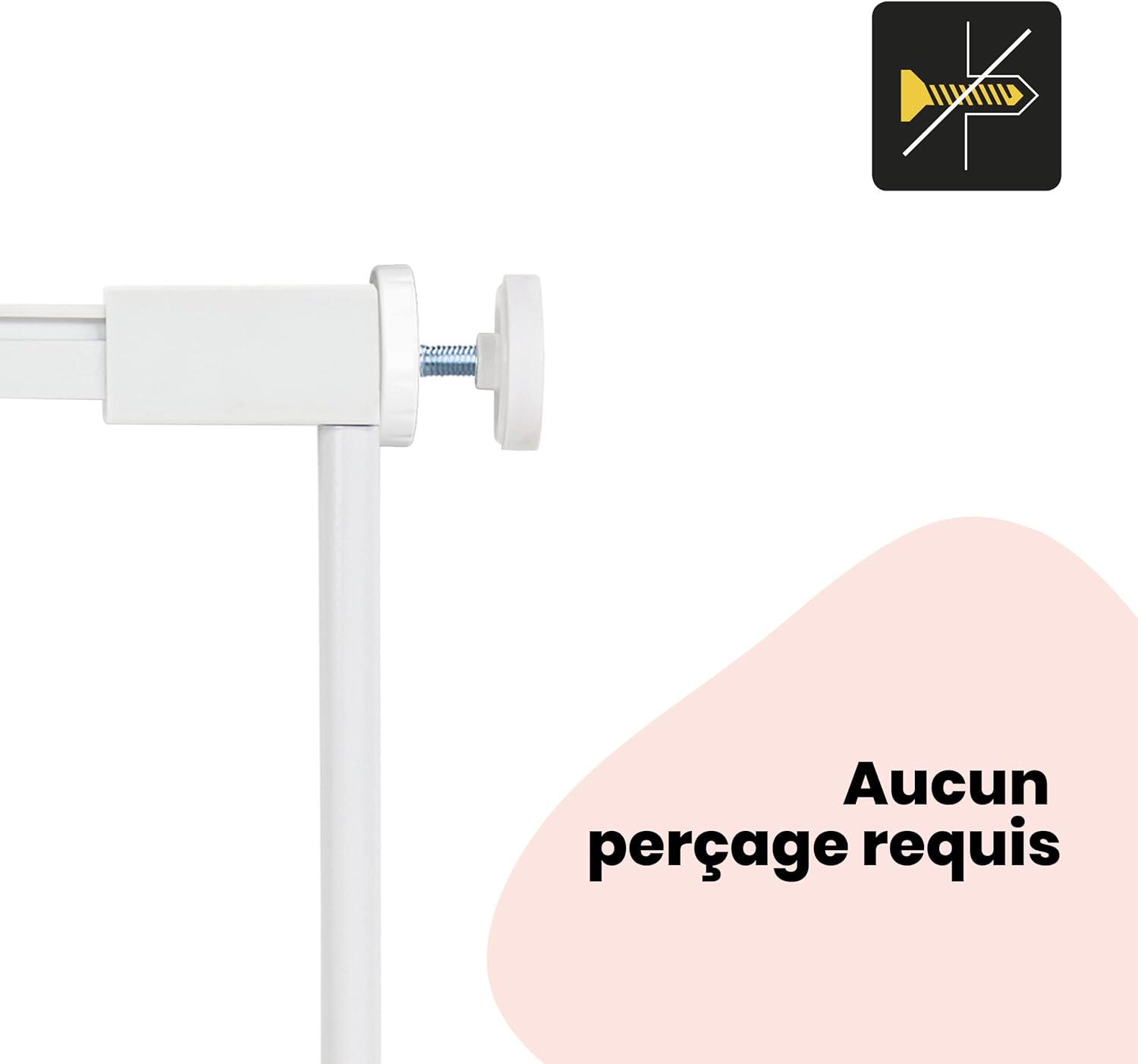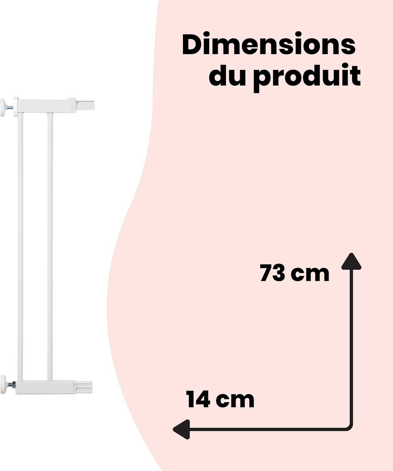 - Bezpieczne przedłużenie o 14 cm – idealne do poszerzenia bramek zabezpieczających w szerszych przejściach.
