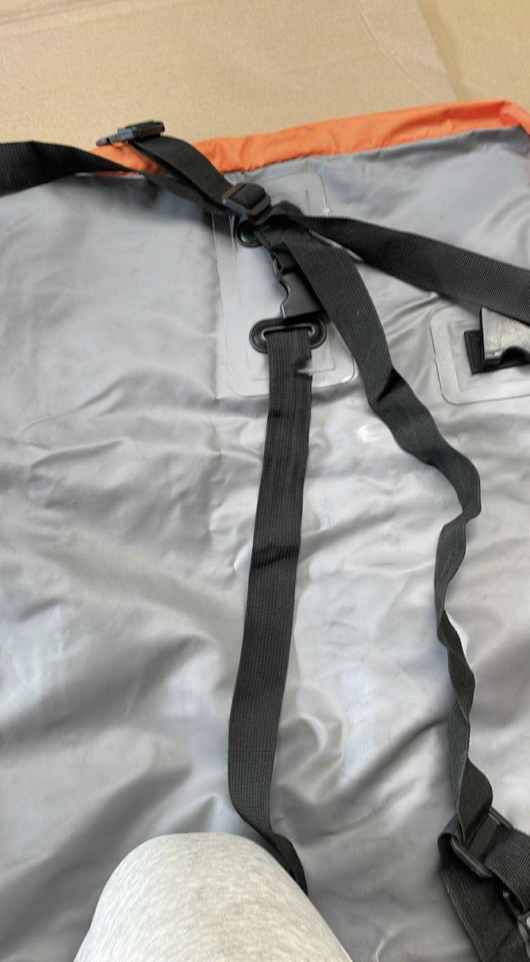 Wysokiej jakości tkanina 1000D PCW gwarantuje odporność na trudne warunki pogodowe. Zgrzewane szwy oraz solidne zamki błyskawiczne chronią wnętrze torby przed wilgocią i zabrudzeniem.