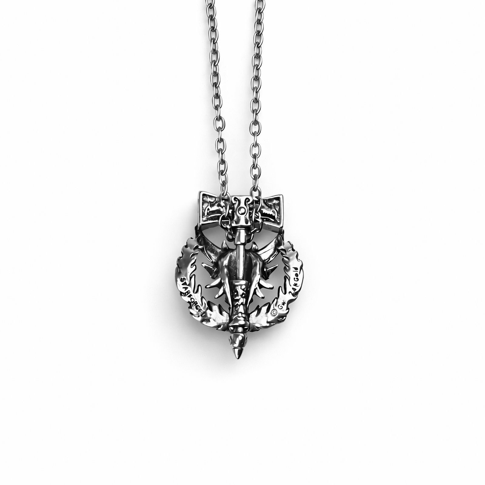 Salamandryński Marine Kosmiczny z Warhammera 40k wyłania się w dynamicznej, agresywnej pozie, wykonany z dbałością o szczegóły z metalu. Ta zawieszka przedstawia pełną, skomplikowanie szczegółową zbroję mocy o teksturowanej powierzchni i lekko zniszczone, bitewne wykończenie. Jego hełm zdobi charakterystyczny grzebień lub symbol Salamander, sugerujący powiązanie jego płonącego rozdziału z kuźnią i ogniem. Otoczony wieńcem laurowym symbolizującym zwycięstwo, ten miniaturowy wojownik posiada również tarczę lub sztandar w tle z herbem. Mierzący około 6 cm, jest dostarczany w komplecie z prostym, pasującym łańcuszkiem do noszenia.