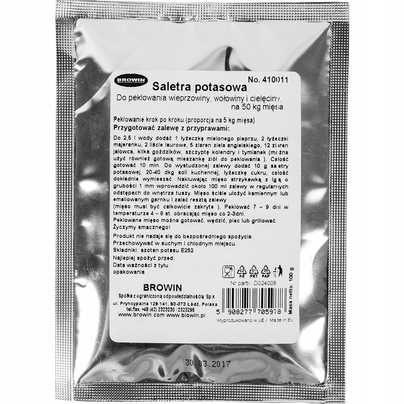 Saletra potasowa - do peklowania każdego rodzaju mięsa. Saletra potasowa to azotan potasu (KNO₃) - bezbarwna, krystaliczna sól (E 252) stosowana do peklowania mięsa metodami tradycyjnymi. Saletra potasowa to obok soli kuchennej jeden z ważniejszych dodatków stosowanych przy peklowaniu mięs, gwarantujący nie tylko przedłużenie trwałości, ale i zachowanie różowej barwy mięsa. Jak to możliwe?