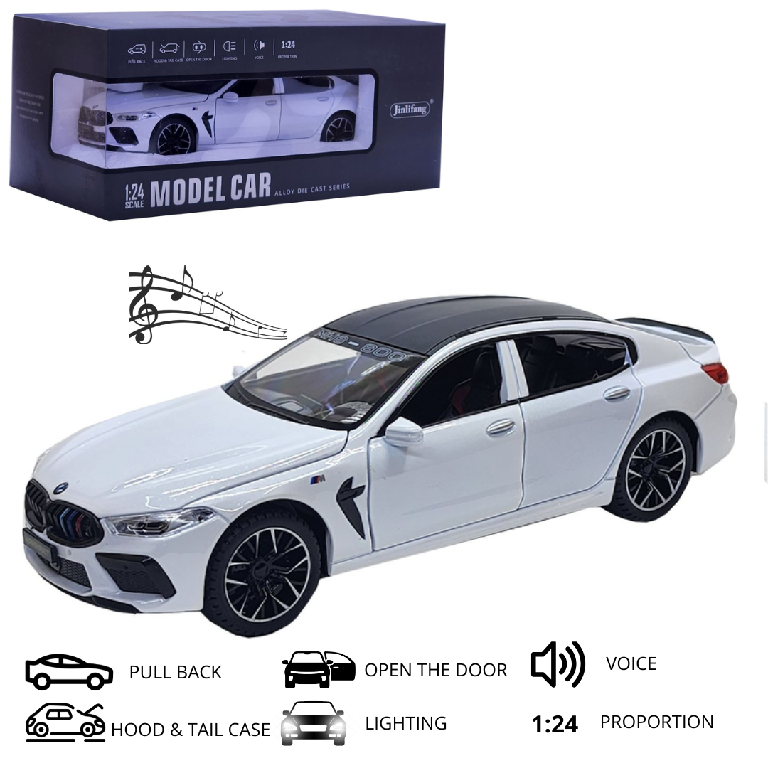 SAMOCHÓD Model BMW M8 800 Metalowy Biały 1:24 otwierane drzwi LED dźwięk
