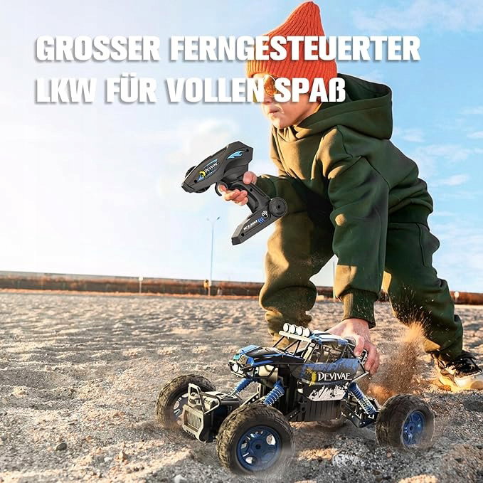 - Terenowy napęd 4WD (4x4): Dzięki napędowi na wszystkie cztery koła, samochód CROBOLL świetnie radzi sobie w terenie. Bez problemu pokonuje piasek, trawę, kamienie, żwir czy nierówności, zapewniając doskonałą trakcję i stabilność.