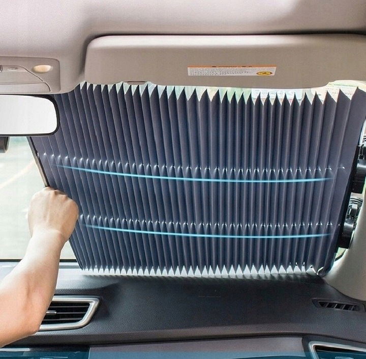 Chcesz utrzymać gorące lub zimne powietrze poza samochodem? Umieść osłonę przeciwsłoneczną po wewnętrznej stronie przedniej szyby.
