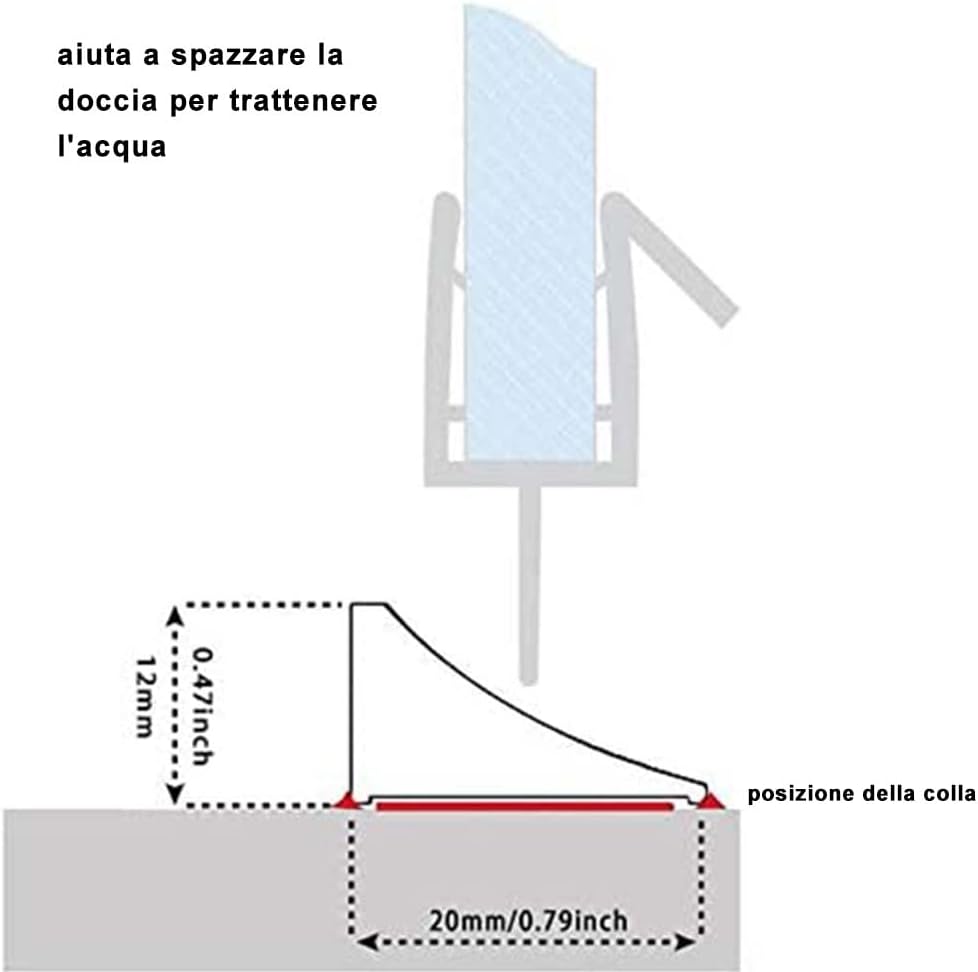 Uwaga: Aby uzyskać lepsze uszczelnienie, należy użyć żelu krzemionkowego do wypełnienia krawędzi bariery wodnej i suszyć przez 24 godziny, aż uszczelniacze będą twarde (nasze produkty nie zawierają uszczelniacza silikonowego). Wysokość bariery progu prysznica wynosi tylko 12 mm. Barierę wodną można zamocować tylko w linii prostej. Zaleca się stosowanie ok. 45 stopni, 90 stopni do klejenia, najsilniejszej przyczepności.