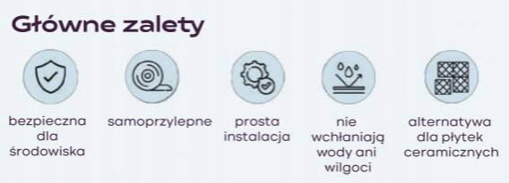 Aplikacja: Zdejmij folię ochronną, przyłóż płytkę do ściany i wygładź.
