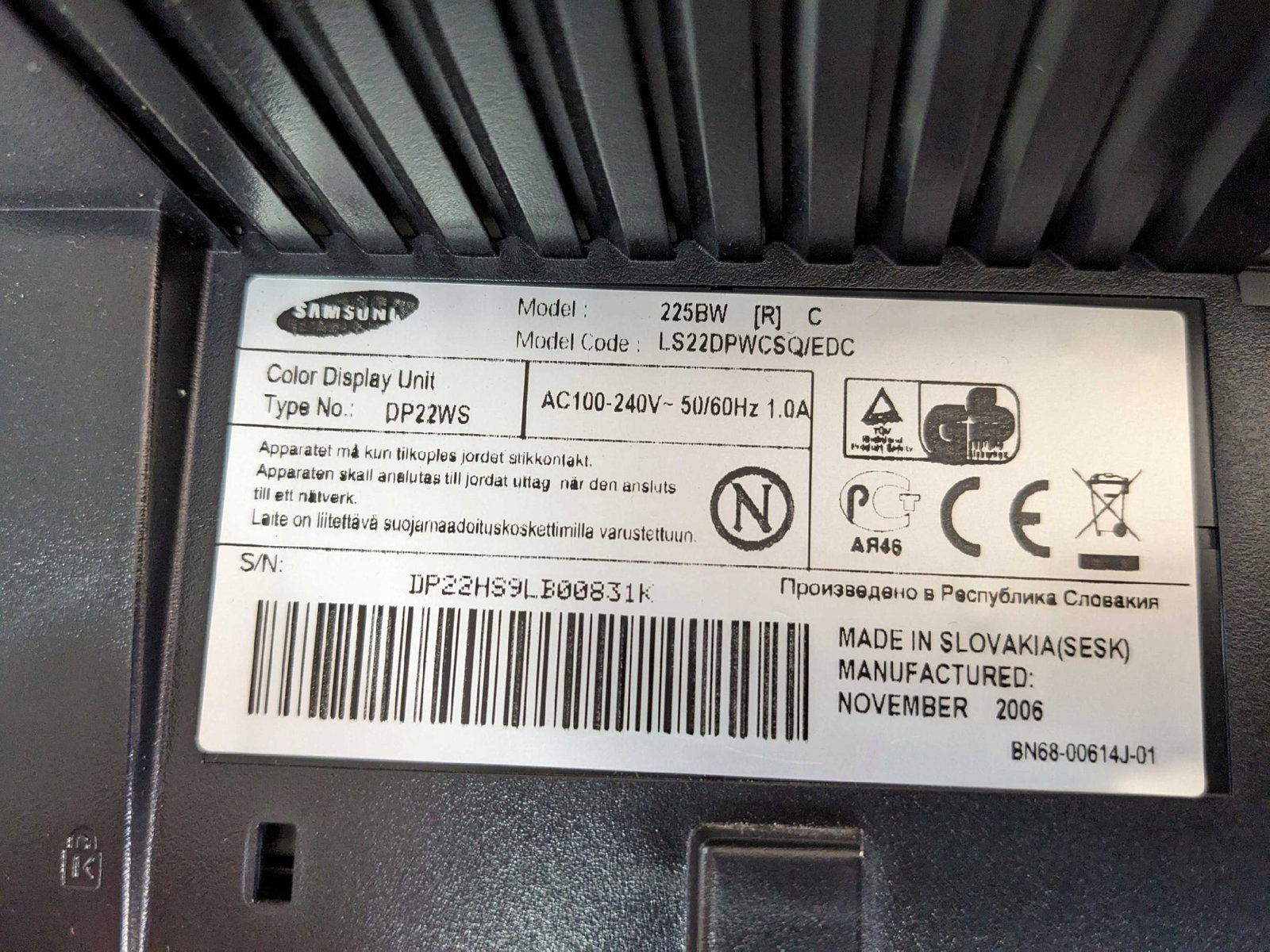 - Producent / model: Samsung 225BW (SyncMaster)