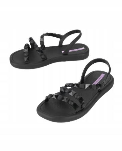 Sandałki damskie płaskie sportowe plażowe ozdobne tworzywo Ipanema Black 40