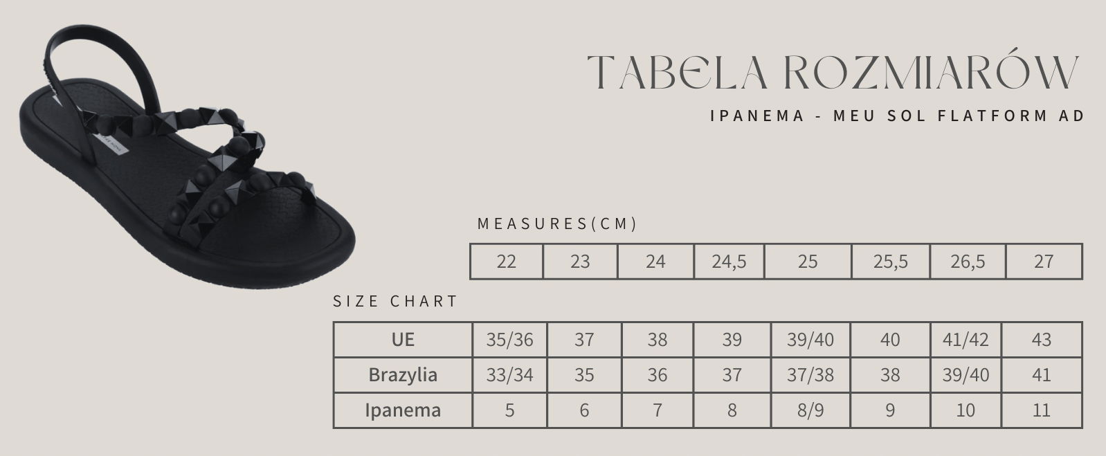 Nowy model sandałów Ipanema "Meu Sol Flatform" to idealne połączenie elegancji i wygody. Wykonane z najwyższej jakości materiałów, dodadzą oryginalności każdej letniej stylizacji. Lekkie i komfortowe, są doskonałym wyborem dla kobiet ceniących sobie zarówno styl, jak i wygodę. Precyzyjne wykonanie oraz nowoczesny design stanowią o ich wyjątkowym charakterze. Elastyczne tworzywo górnej części obuwia w połączeniu z antypoślizgową gumową podeszwą TPR gwarantują stabilność i komfort noszenia. Odważne, zdobione paski nadają sandałkom wyjątkowego charakteru. Idealnie sprawdzą się zarówno na spacerach miejskich, jak i relaksujących dniach na plaży. Elegancki wybór, który uzupełni letnią garderobę, podkreślając styl i modny wygląd.