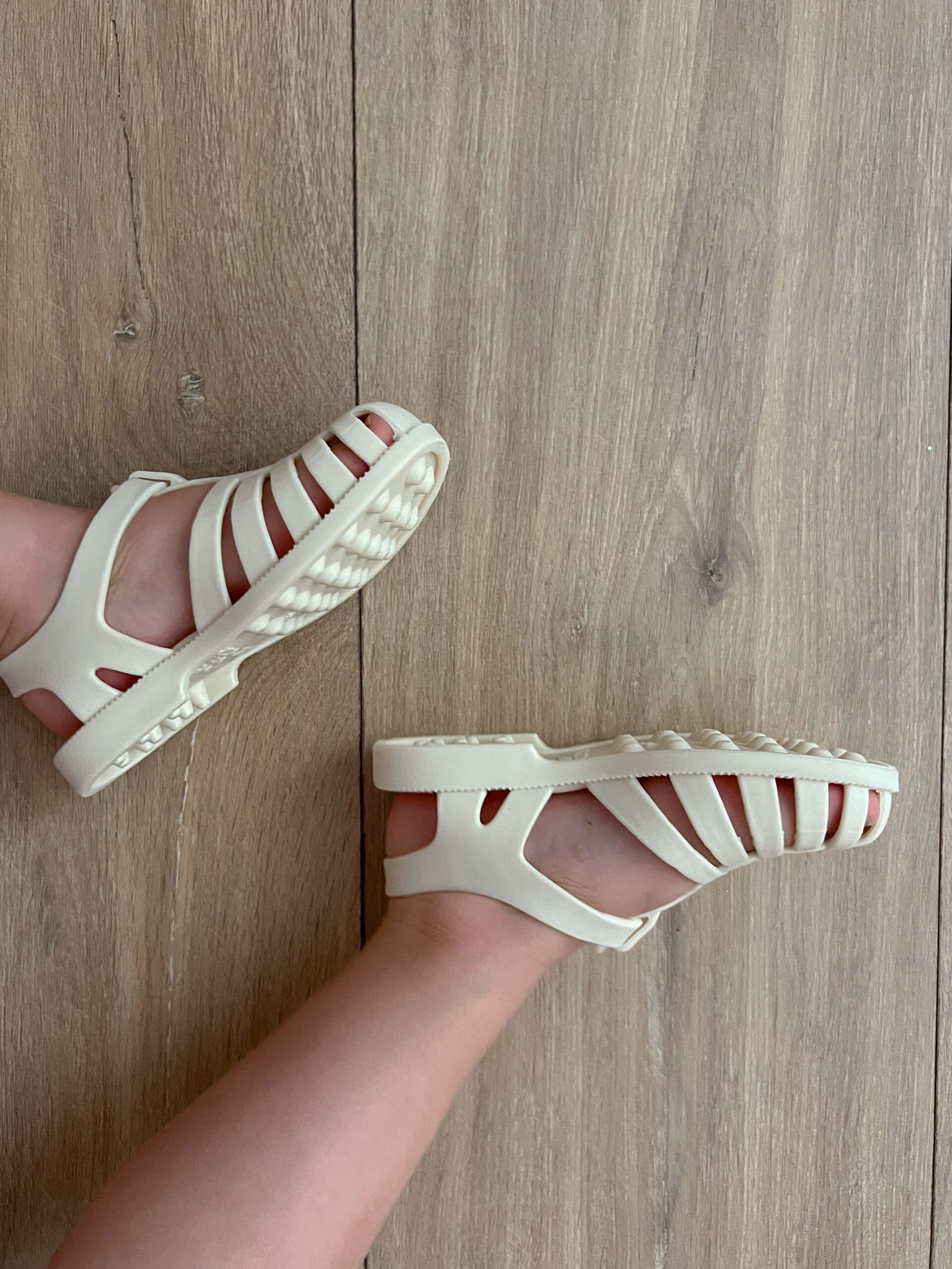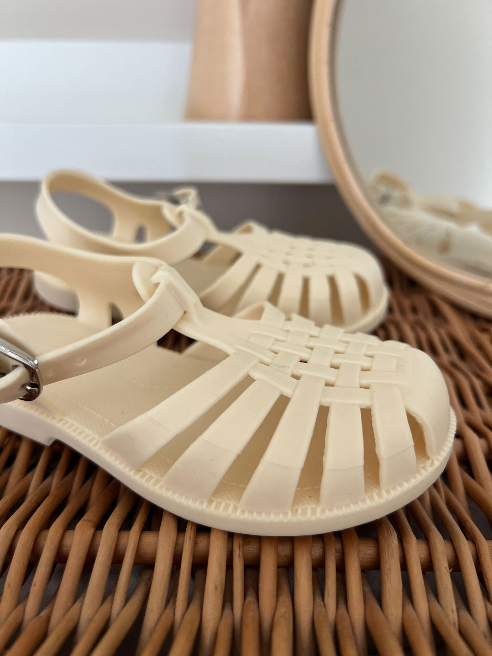 Sandałki Jelly to obuwie bardzo uniwersalne, nadające się zarówno do codziennych spacerów, czy zabawy, jak i na wszelkie wakacyjne wyjazdy. Sandałki wykonane z tworzywa sztucznego (PVC) nadają się jako obuwie kąpielowe do wody, piasku, czy na kamienną plażę. Świetnie sprawdzają się również na co dzień, jako wygodne i łatwe w czyszczeniu sandałki, dobrze prezentujące się nawet z sukienkami. Sandałki mają regulowane w kostce zapięcie na zatrzask, są miękkie i bardzo elastyczne. Obuwie w tej minimalistycznej stylistyce świetnie sprawdzi się na lato, do wielu różnych strojów zarówno dla chłopca,jak i dziewczynki. Wielką zaletą jest ich bardzo łatwe czyszczenie i szybkie wysychanie.