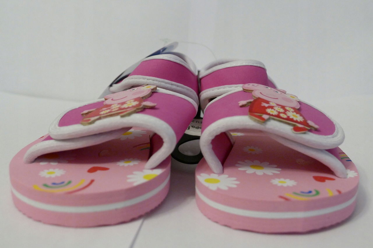 Urocze i wygodne sandałki z pianki EVA z motywem Świnki Peppy, idealne na ciepłe dni! Zapinane na praktyczne rzepy, które ułatwiają zakładanie i zapewniają idealne dopasowanie do stopy.