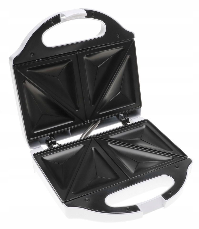 Wygodny opiekacz do kanapek wyposażony w nieprzywierającą powłokę z miejscem na dwa tosty zapewnia doskonałe efekty nawet przy dużej ilości składników.