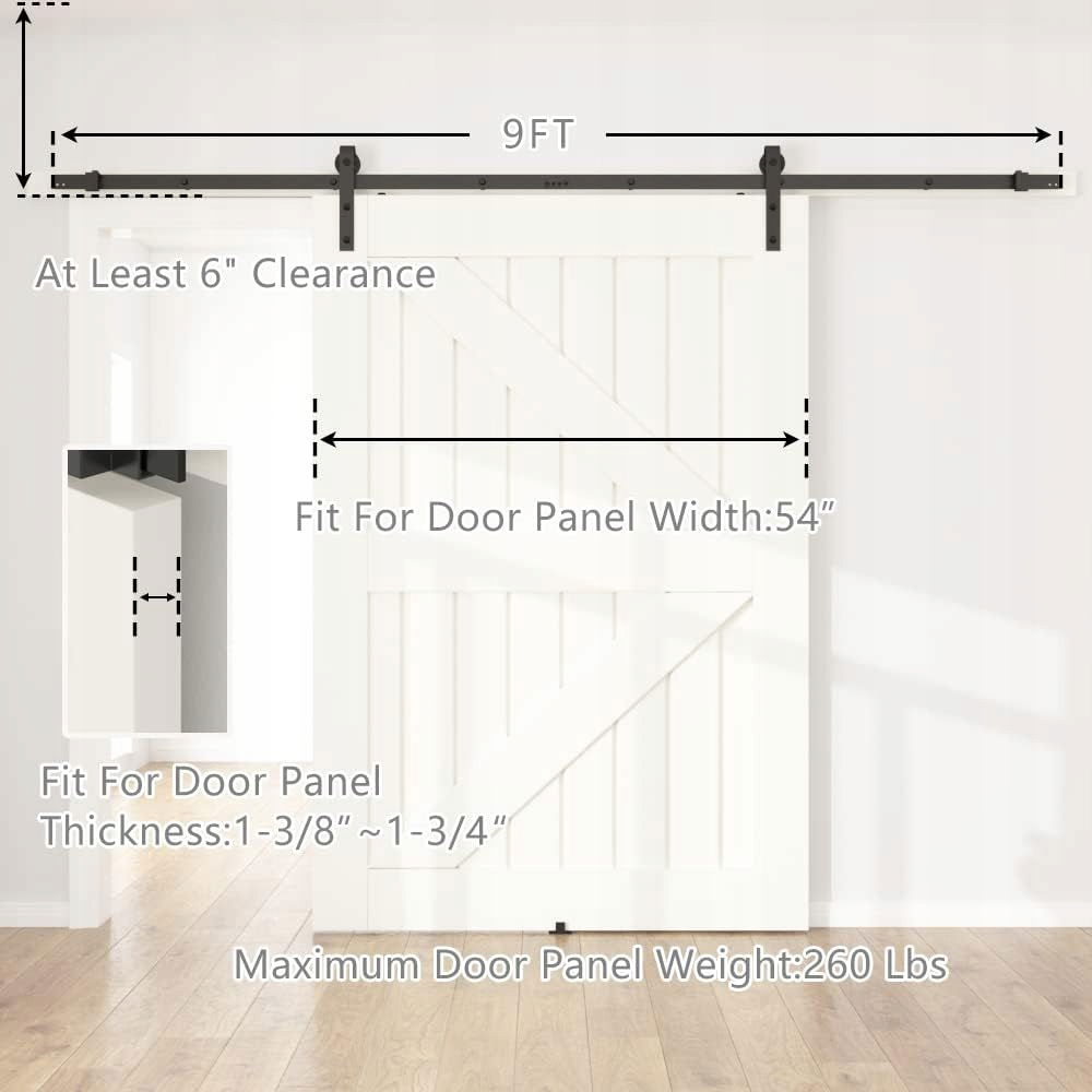 Zestaw SANKEYTEW 274 cm (9 ft) to kompletny system montażowy do jednych drzwi drewnianych, łączący trwałość, płynność działania i nowoczesny design.