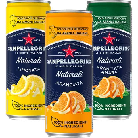 Wyprodukowane w 100% z naturalnych składników, włoskie soki pomarańczowe nadają mu niepowtarzalny i autentyczny smak. Od 1932 roku Aranciata Sanpellegrino stanowi niepowtarzalne połączenie koloru i witalności na chwile odpoczynku.