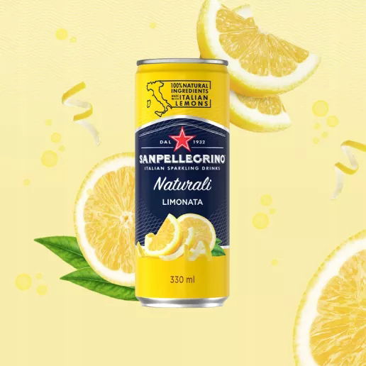 W puszce Aranciata Sanpellegrino znajdziesz cały zapach świeżo zebranych, dojrzałych włoskich pomarańczy, niepowtarzalny i autentyczny smak dzięki 100% naturalnym składnikom. Świeża i otulająca gama aromatów poprowadzi Cię w zmysłową podróż przez wszystkie niuanse Morza Śródziemnego.