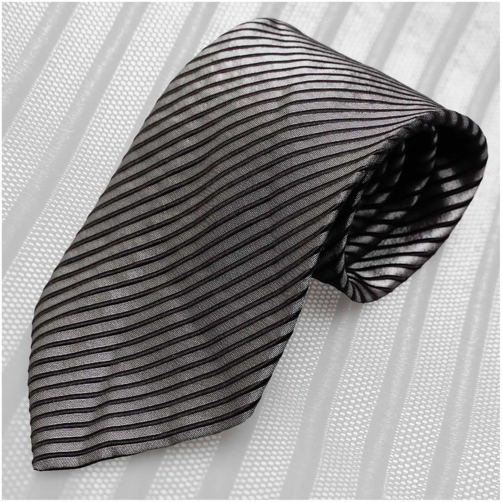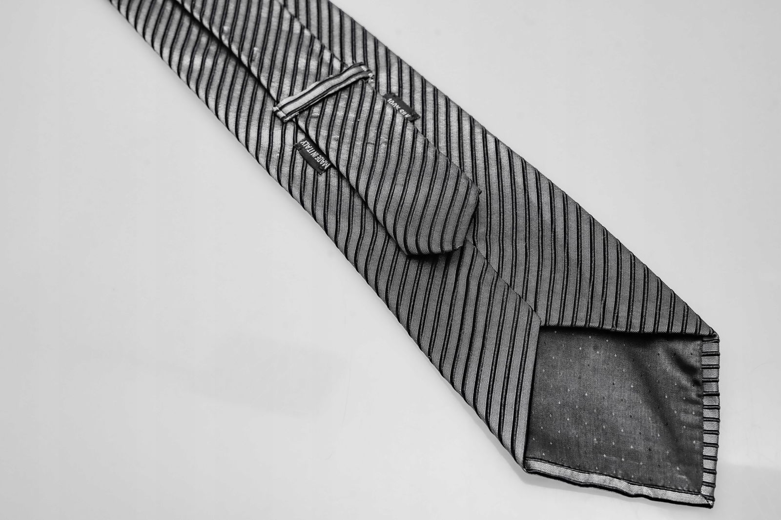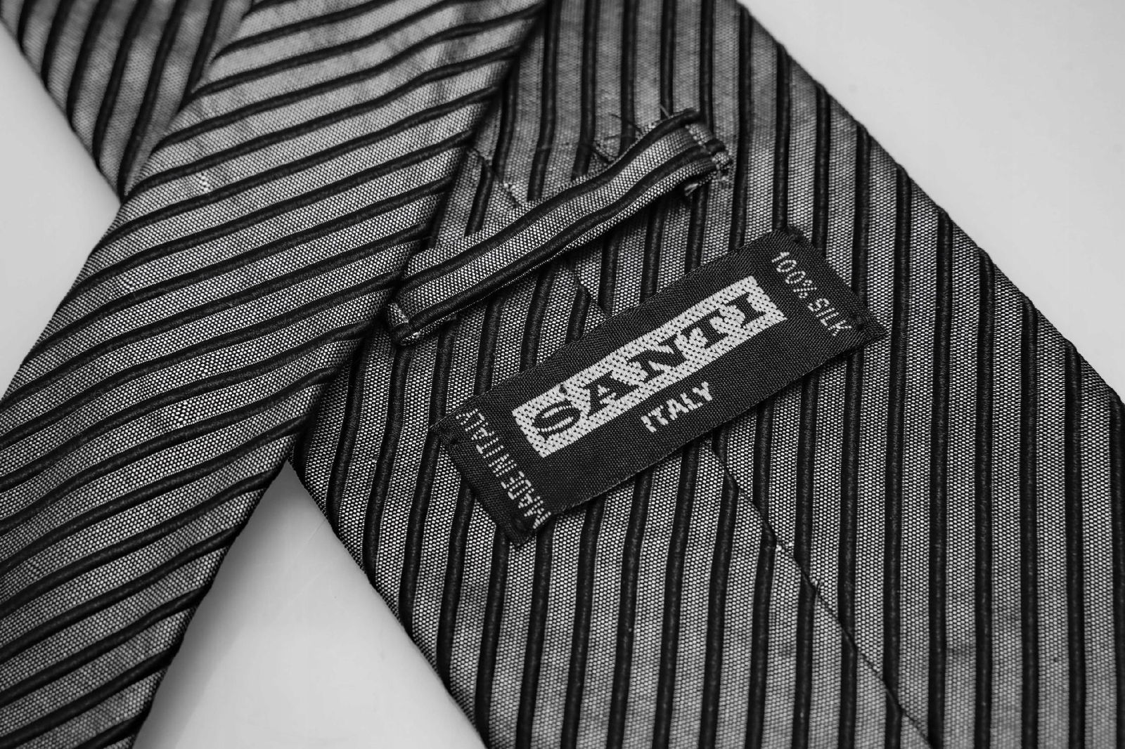 SANTI | 100% jedwab | Krawat stalowy w czarne prążki | Made In Italy