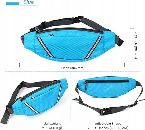 Regulowane i pojemne kieszenie - z 2 dużymi kieszeniami i solidnymi zamkami błyskawicznymi ta saszetka biodrowa może pomieścić do 6 cali telefonu komórkowego, kluczy, kart, portfela, chusteczek i innych rzeczy. Regulowane paski o długości od 20 do 45 cali z solidnymi karabińczykami zapewniają stabilny ładunek i pasują do większości mężczyzn i kobiet.