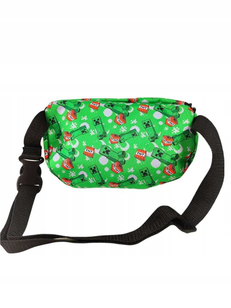 • Saszetka nerka dla chłopca jest w kolorze zielonym i posiada rewelacyjny i tak modny w ostatnim czasie nadruk z gry Minecraft.
