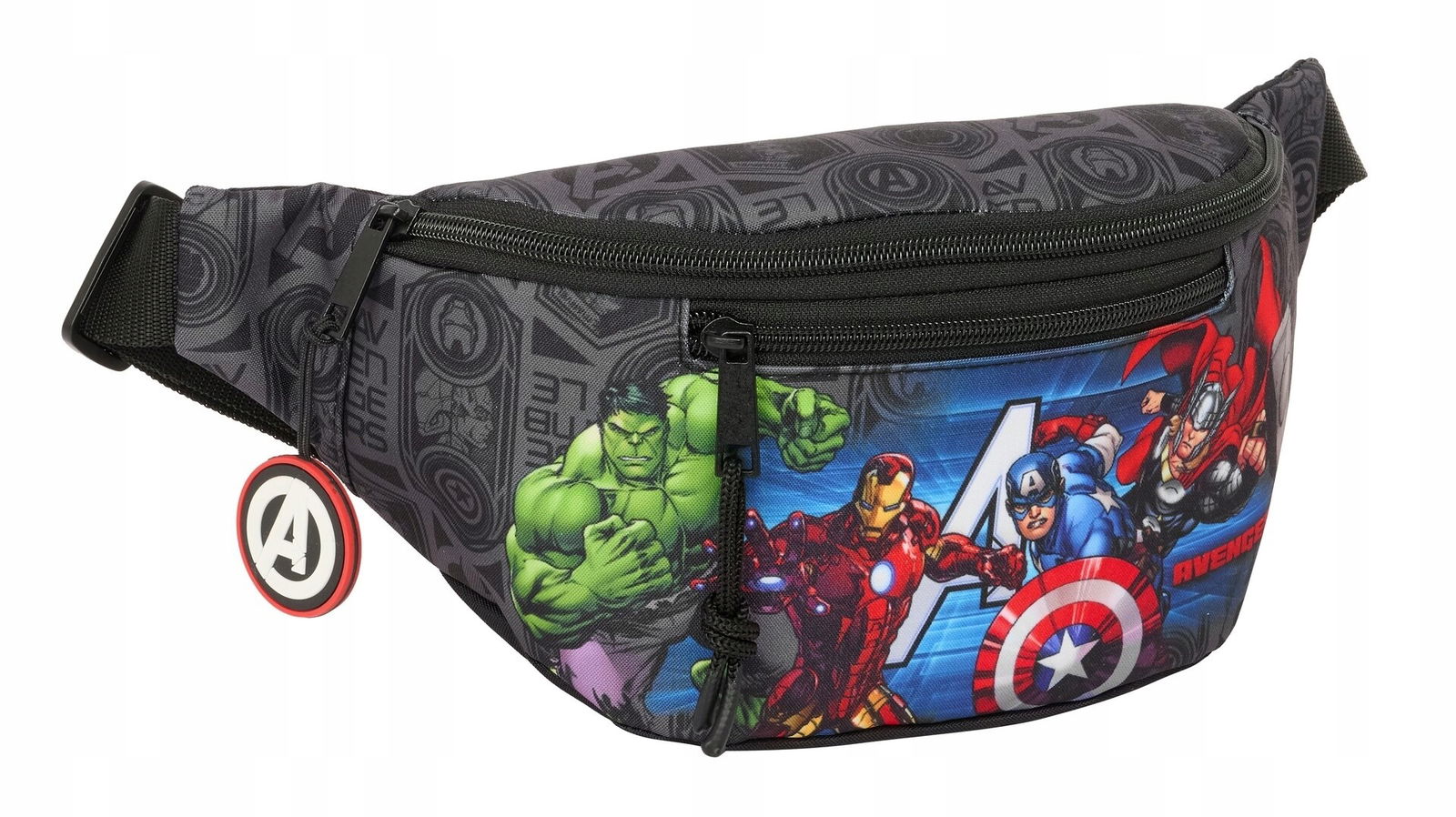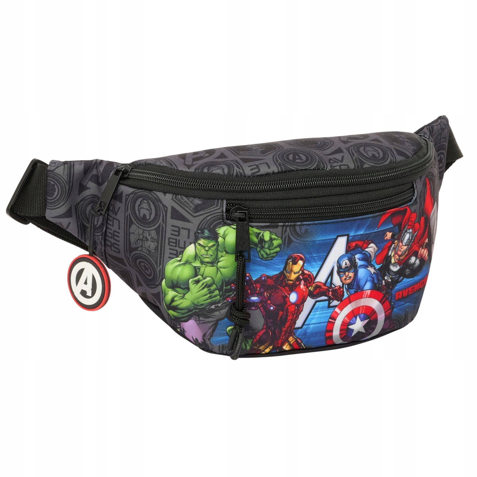 Saszetka Nerka Torebka Dziecięca Avengers Pasek Duża Młodzieżowa Czarna