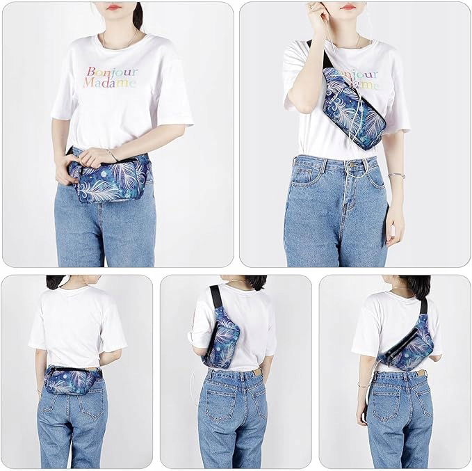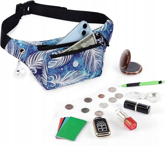 Lekka torba na pas biodrowa, wielokolorowa z regulowanym paskiem i gniazdem słuchawkowym dla kobiet Mężczyzn