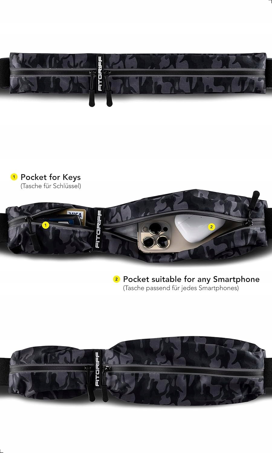 Dzięki innowacyjnemu paskowi do biegania Fitgriff, masz pewność, że najważniejsze akcesoria są zawsze z Tobą, niezależnie od aktywności.