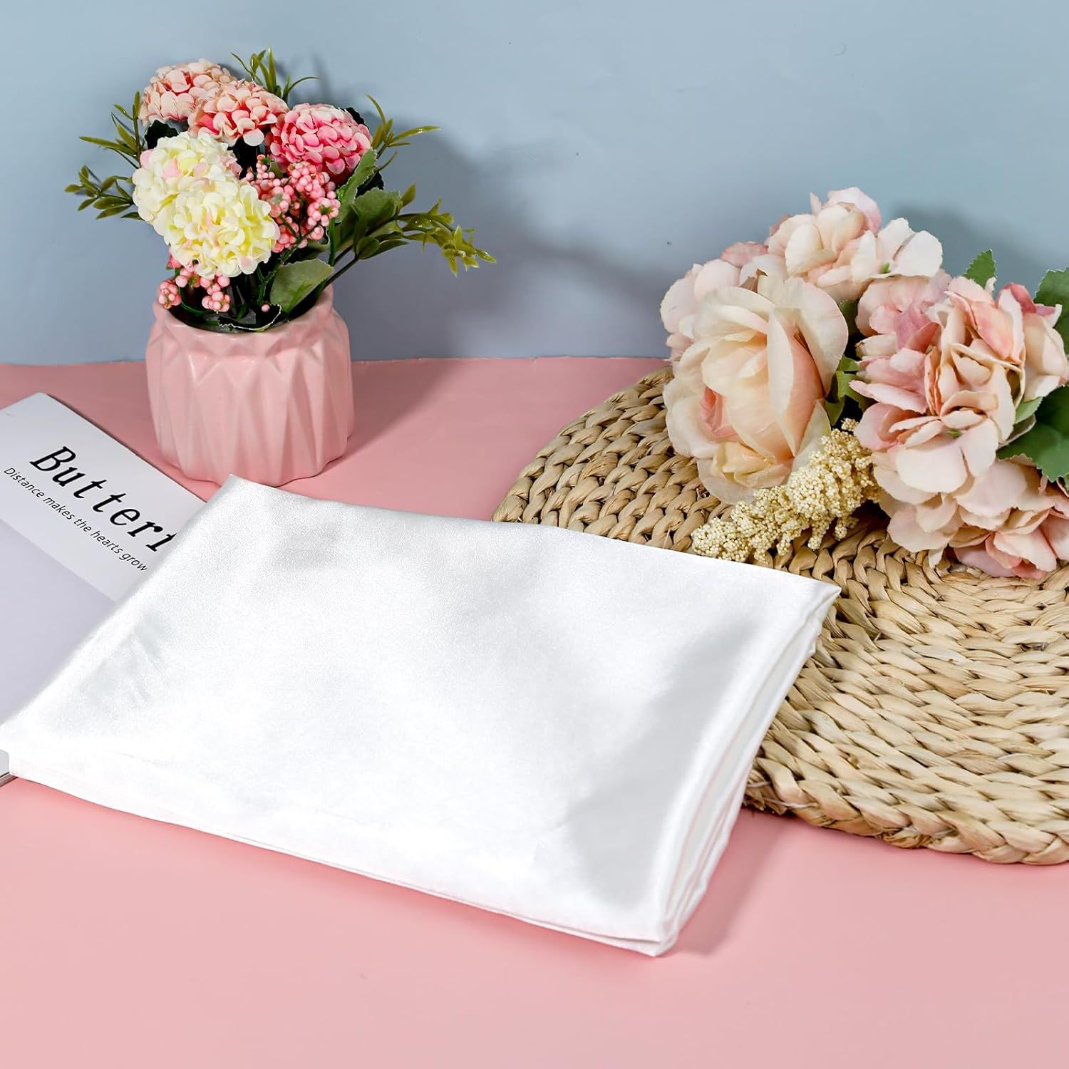 - Jedwabista tkanina satynowa - nasza satynowa tkanina w kolorze białym składa się w 100% z wysokiej jakości poliestru, jest miękka w dotyku, jest dostępna w jasnych kolorach, odporna na zagniecenia i blaknięcie, nadaje się do ponownego użytku