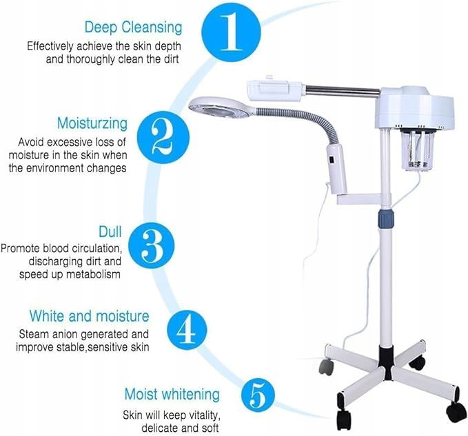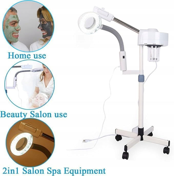 - Profesjonalne urządzenie do sauny parowej z lampą powiększającą – idealne dla zdrowej i promiennej skóry!