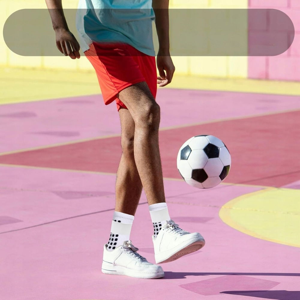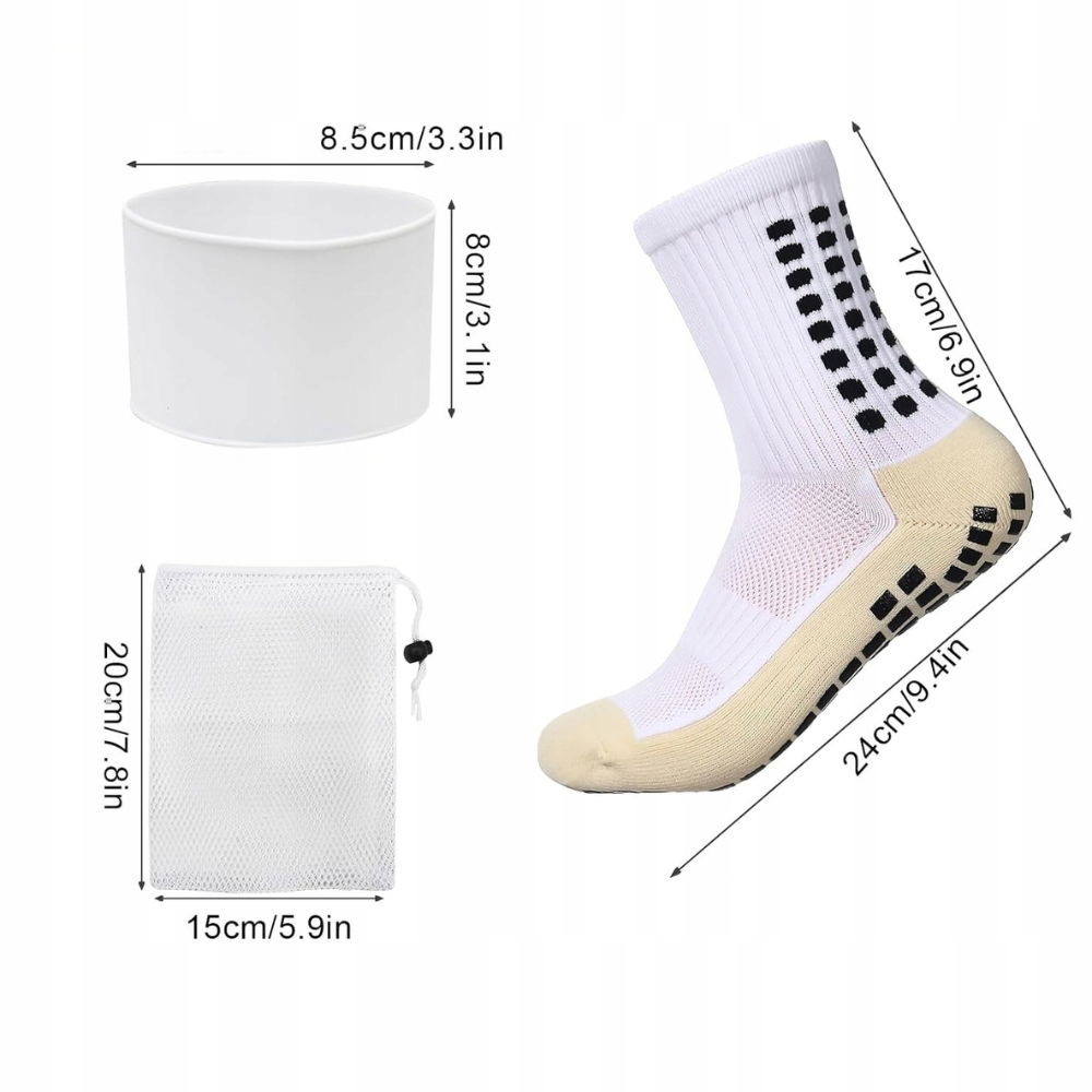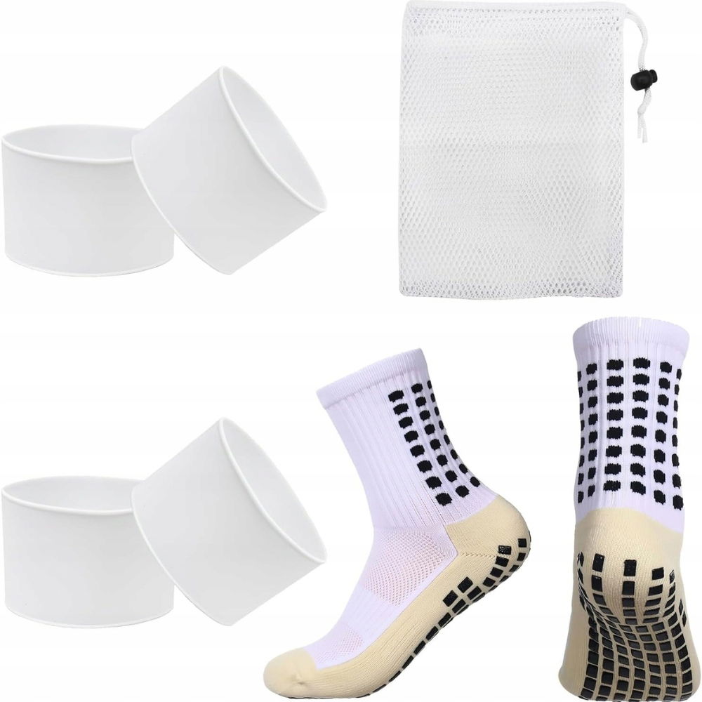 - Zawartość: 2 pary silikonowych ochraniaczy, 1 para skarpet piłkarskich, 1 siatkowa kieszeń