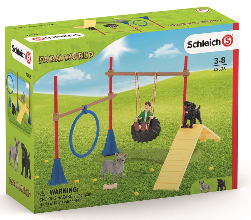 plac zabaw dla psów z oponą do huśtania, obręczą oraz huśtawką,