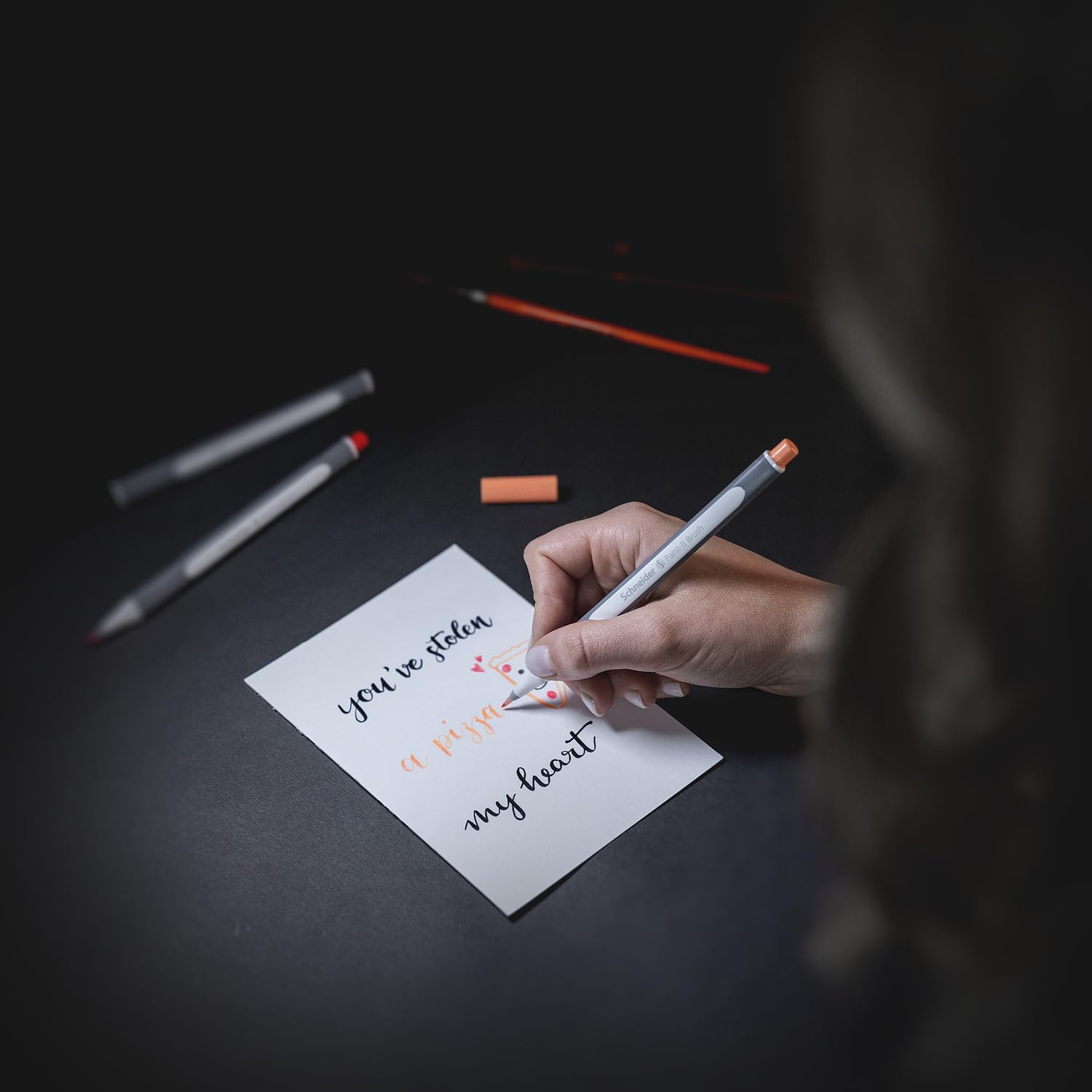 Elastyczna końcówka pędzelkowa premium umożliwia zmienną szerokość linii, idealna do ręcznego pisania i kaligrafii. Jest osadzona w plastikowej końcówce, która zapewnia stabilność